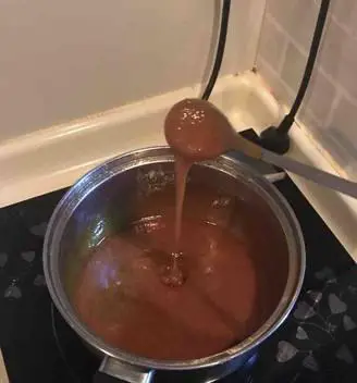 6.煮至浓稠:慢慢煮至糖水变稠,不断搅拌,以防止糊底。