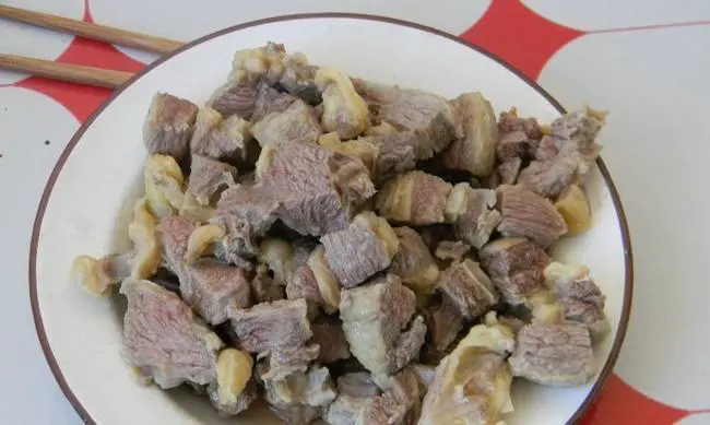 将牛肉洗净后,切成小块,然后用清水将牛肉焯水,焯去血水和脏物,保持牛肉的原味。