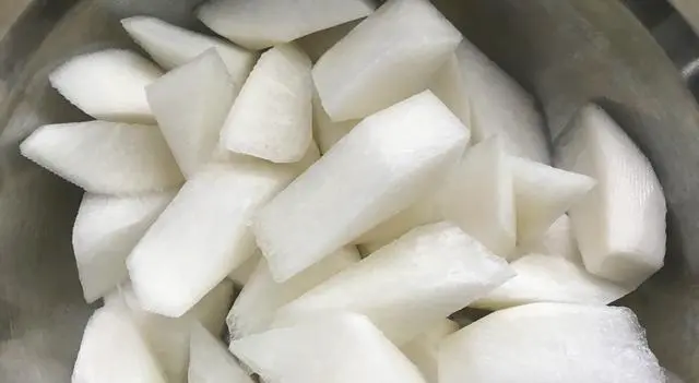 白萝卜是一种非常健康的蔬菜,含有丰富的维生素C和膳食纤维。它可以帮助消化和排毒,对预防便秘和肠癌有很大的帮助。