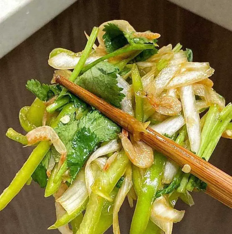 老虎菜的咸香与白萝卜的甘甜相互融合,令人食欲大增。此外,白萝卜丝还可以增加膳食纤维的摄入量,有助于消化和排毒,非常适合健康饮食的人群。
