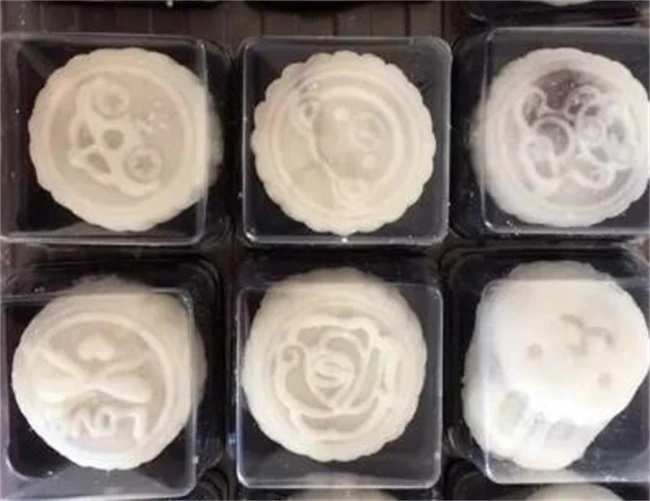 时间到了以后,把蒸好的冰皮取出来冷却到50度以下,然后把冰皮从盘子里面取出来,放在案板上。为了增加冰皮的口感和嚼劲,可以用手蘸一点食用油,把冰皮在案板上来回揉几遍,然后取下大概30颗左右,团成一个小球,从中间挖一个洞,把豆沙馅儿放在里面包好,然后放到模具里面压成月饼的形状,可以一次多做几个,做好之后放在冰箱里冷藏,两个小时定型,如果家里面有桂花的话,在蒸冰皮的时候放一点桂花在里面做出来的月饼,带有淡淡的桂花香气更加美味。