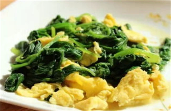 菠菜炒鸡蛋:菠菜炒鸡蛋也是家里面比较常见的,菠菜吃法。做菠菜炒鸡蛋也是需要先把菠菜烫一下,去除菠菜当中的草酸,再炒味道更好吃。碗里面打入两个鸡蛋,加入适量盐搅拌均匀,锅里油烧到八成热把鸡蛋下进去快速炒散,然后装在盘子里面备用,再放上一点油,油热之后把葱花下进去炒香,然后把提前炒好的菠菜,倒进去,加入适量盐和蚝油快速翻炒,然后把鸡蛋下进去翻炒均匀即可出锅。