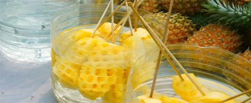 但是在这里还是要注意一点,就是在调制盐水的时候不要放太多盐,因为盐确实会影响菠萝的甜味,适当的盐可以对菠萝起到有益的作用,但如果盐水过咸的话,这可能起到反作用,最终画蛇添足。
