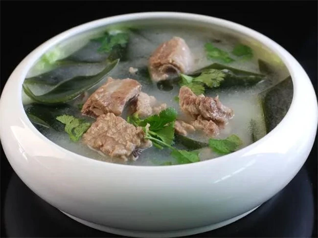 第二道补钙的菜海带排骨汤,海带的钙含量也很高,排骨里面也是有丰富的钙质的,根据自己的喜好,可以使用大骨头,也可以使用排骨,海带可以用干海带泡发也可以买鲜海带,排骨回来洗干净,冷水下锅焯出血沫,然后放在砂锅里面还带叶清洗干净,切成大块儿连同排骨一起放在砂锅里,切上几片姜和冲段,放几粒花椒料酒,大火烧开之后转小火,慢炖40分钟,加入盐调味,再炖几分钟,放上几个枸杞,这道菜就做好了。