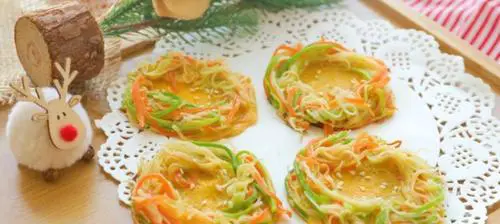 将胡萝卜洗净、去皮、切成小块,加入适量水中榨汁。然后将榨出的胡萝卜汁加入面粉中揉搓成团,放置15分钟后,取小块面团,用擀面杖擀成薄片状,切成条状即可。