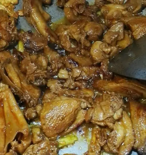 然后倒入适量的料酒、生抽、老抽,继续翻炒均匀。注意调味时不要放太多盐,以免影响菱角的口感。