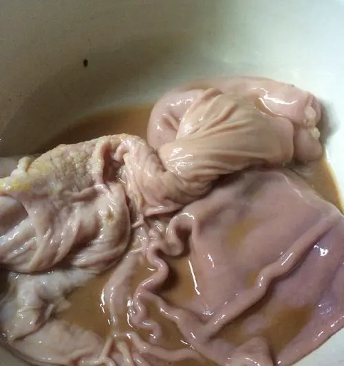 选择新鲜的猪肚和猪肠,表面干净无异味,质地坚韧有弹性,无腥臭味。将猪肚和猪肠分别清洗干净,再用淀粉水浸泡半小时,以去除异味和污垢。