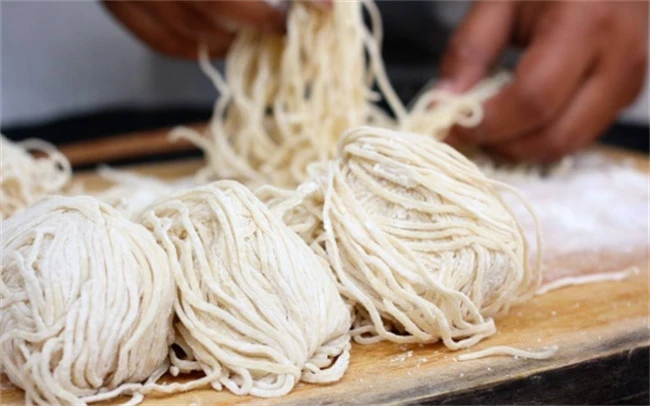 第2次烤肉的时候就去煮面。锅里面稍微多烧一些清水。水开之后把面条下进去,大火煮三分钟左右,面条成熟,捞出来放在冷水里面冲凉。如果喜欢吃热汤面,面条就要稍微煮的时间短一点,不然面在热汤里一泡就会变得特别软不好吃。根据自己喜欢的口味把面条调味,吃汤面的话就在汤里面调味。然后把烤好的叉烧肉取出来,切成薄厚一致的片,放在面条上面美味的脆皮叉烧肉长寿面就做好了。