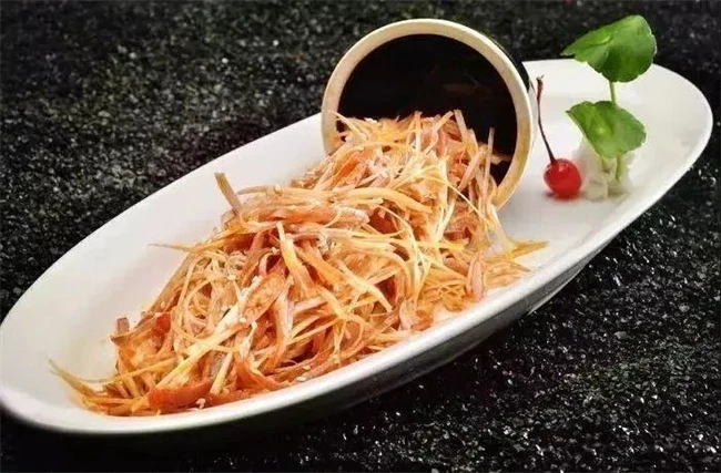 大荔水磨丝大荔县的传统风味,选用的主要材料是猪耳朵,辅助材料选用的是鸡蛋清和蒜苗等。制作的时候刀工非常的惊人。在切猪耳朵的时候必须得非常薄,而且尽量不让它切断,这样才能在吃的时候口感更加爽口。大荔水磨丝是作为陕西省的小菜使用的,并不作为主食供人食用。