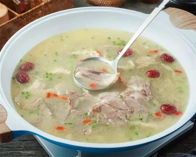 当归羊肉汤属于一道药膳所需要的原料,有羊肉可以使用羊排或者羊腿肉500克左右,生姜250克。当归150克,适量葱段,料酒,盐把羊肉洗净,凉水下锅汆烫一下,然后捞出来放在砂锅里面加入清水,当归,生姜,羊肉,大火烧开,然后撇去浮沫,改成小火炖一个小时左右,羊肉熟透加入盐调味儿即可出锅。这个汤对低血压脾胃虚寒有非常不错的效果。