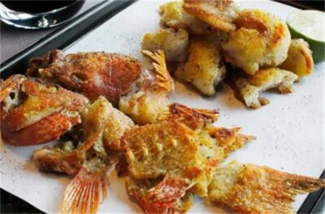 煎焗东星斑的做法也非常简单,把东星斑洗干净,把肉片下来切成块儿,用盐,糖料酒生粉抓匀腌半个小时,然后起锅烧油放进葱段姜片炒香,然后再把鱼加进去,小火慢慢煎至两面煎黄,这个步骤一定要有足够的耐心,小火,慢慢的煎,如果发现锅里面的油少,有些粘锅的迹象,就顺着锅边少量的粘上一些油,直到煎到两面金黄完全熟透以后撒上葱花就可以出锅了。