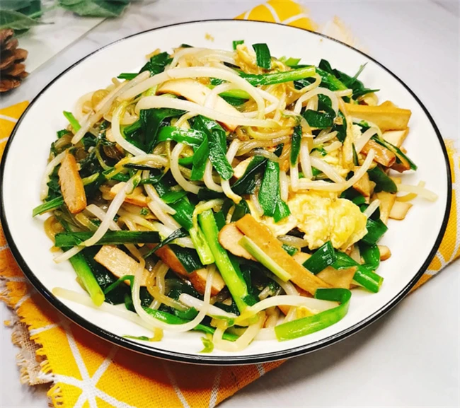 豆芽小炒也是非常美味的,需要的材料稍微多一些。准备一点干豆皮儿,粉条,韭菜,两个鸡蛋,适量瘦肉丝。把粉条放在开水里面煮软,干豆皮切成宽条,韭菜切成寸段,鸡蛋炒散。瘦肉丝用盐和水淀粉浆一下。锅里面烧热油,把瘦肉丝放里面炒干炒香,加入葱花,干辣椒段儿,炒出香味儿,然后把。豆芽下锅快速翻炒,加入粉条,豆皮儿,快速炒匀加入适量盐味极鲜老抽调味儿。迅速的下入炒散的鸡蛋和韭菜快速翻炒均匀就可以出锅了。