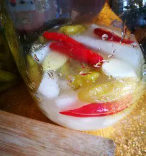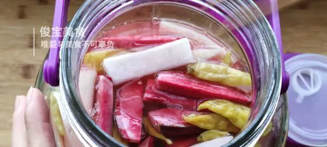 品尝一口,酸爽可口,萝卜脆爽有嚼劲,还有一点点辣味,非常好吃。