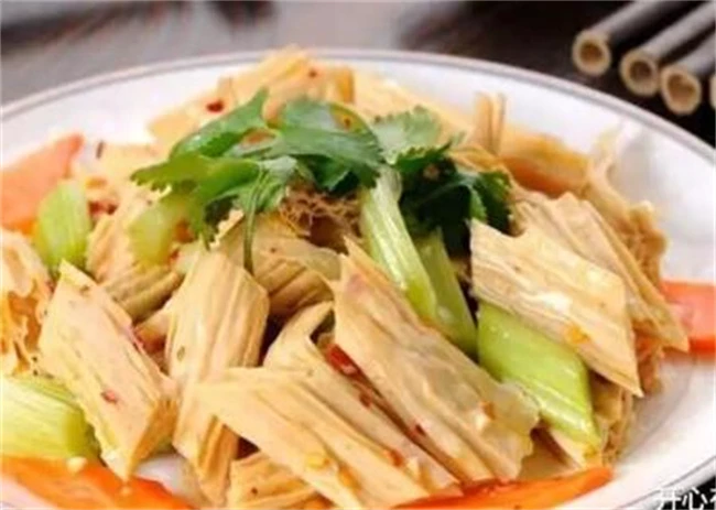 腐竹最简单的做法就是凉拌,把腐竹放在温水里面浸泡2~3个小时,直到腐竹软了以后,再用清水冲洗两遍,改成大小合适的小段,然后放在盆子里面切点胡萝卜条芹菜条,胡萝卜和芹菜用开水焯烫几秒钟捞出来之后冲凉放在腐竹里面。起锅烧油拍点蒜末,放在腐竹里,喜欢吃香菜的,也可以放一点香菜,油热以后放上几粒花椒炸香,然后把热油倒在蒜末上面放点盐和味精,一点白糖调味就可以吃了。