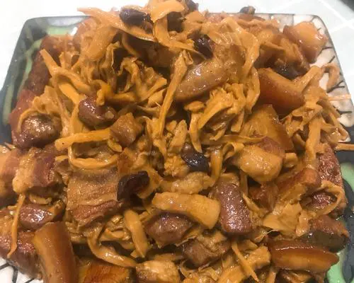 在烹饪过程中,可以加入适量的生抽和老抽,这样可以让干笋肉丝呈现出漂亮的深红色。