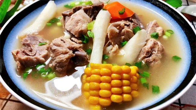 当然我们在制作排骨汤的时候,也可以采用其他的方式,比如先将排骨剁成小块,利用凉水下锅,适当焯水,之后将排骨捞出,清洗干净。之后我们在锅中放入玉米,姜片,八角,枸杞,大红枣,放入排骨,盖上锅盖炖45分钟的样子。一般炖好之后,加入适当食盐,山药,再炖10分钟此时所有的食材都已经入味。我们可以直接将山药玉米排骨汤盛出,此刻不仅可以喝汤,还可以直接吃排骨,口感较棒。