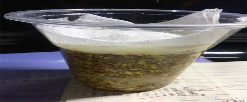 5. 再用纱布垫一下,纱布的上面再压上石子,避免桂花飘出水面。