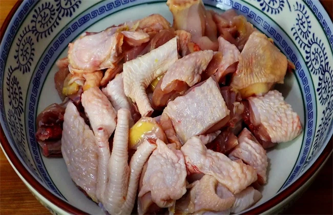 第二步腌制鸡肉。将准备好的鸡肉清洗干净后切成块,放入碗中进行腌制,向碗中加入少量的大盘鸡料汁,再向其中加入适量的葱,姜,蒜,抓拌均匀后静止一段时间备用。