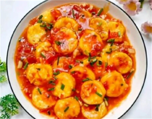 我们先来做一道茄汁日本豆腐,准备三包日本豆腐,切成一厘米左右的厚片,拿个盘子里面装上淀粉,把日本豆腐裹上淀粉,然后放在油锅里两面炸金黄,炸日本豆腐的过程中,可以取一个小碗,兑点料汁儿挤上两勺番茄酱,一勺白糖,半勺白醋,适量的盐生抽,蚝油,加上一点淀粉再兑上点水,搅拌均匀,日本豆腐炸好以后,锅里面留一点点底油放上葱花姜末爆香,然后把日本豆腐下进去,再把料汁搅拌均匀倒在锅里面,大火烧开汤汁粘稠都裹到豆腐上就可以了。