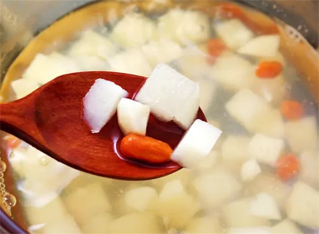 当然这个时间也是要自己掌握好。多注意一会儿,味道更浓郁一些。汤煮好之后把枸杞用清水冲洗一下,再放到汤里面煮两分钟即可出锅。其实做这个汤并没有什么太大的难度。最主要的是炖汤的时候一次把水加足,中途如果再加水,汤的味道就会受到影响。红枣和荸荠本身都带有甜味,不喜欢吃太甜的或者是血糖高的人,可以不放冰糖。如果给小孩子喝也可以不放糖。