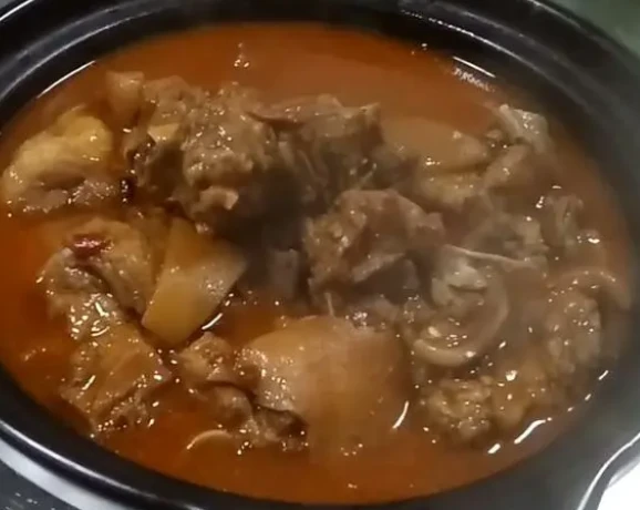 锅里面再加入适量料酒,蚝油,白胡椒粉,这些都能有效的去除狗肉的腥膻味儿。大火烧开之后转成中小火,盖上盖子焖一个半小时。到时间之后加入适量盐调味,然后再把白萝卜倒进去炖熟即可。做好的红焖狗肉装在火锅里面吃,或者是酒精锅,可以边吃边烫点青菜。炖红焖狗肉火锅,除了放白萝卜之外也可以放山药。