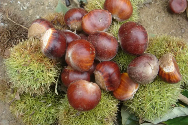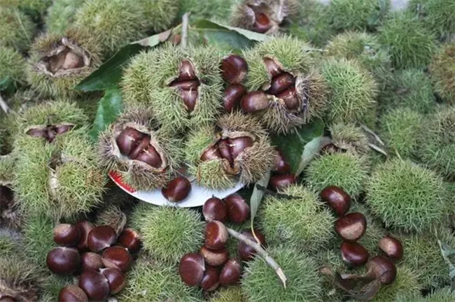 怀柔油栗与板栗的区别在于颜色的不同。怀柔油栗与板栗有非常大的不同,其外观颜色与作用都不一样,怀柔油栗的外观非常的黑,而且油栗的表皮有一定的光泽,普通的板栗外观颜色要淡一些,呈现黄褐色,没有怀柔油栗的颜色黑,并且普通的板栗果皮表面光泽度低,与怀柔油栗有着非常大的区别,一般很容易能够将怀柔油栗与板栗区别开。
