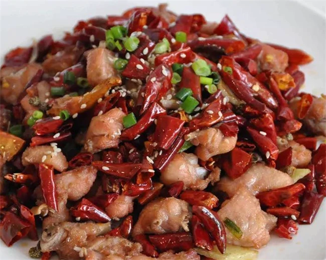 重庆辣子鸡喜欢吃辣的人是必不可错过的。可以使用半只鸡,也可以使用两只鸡腿。干辣椒段多准备一些,如果有灯笼椒再配上几个味道更好。适量麻椒,葱姜蒜都切成末。鸡腿剁成小块儿用清水冲洗几遍。打上一点盐抓匀倒入适量淀粉,把拌均匀,让每一块肌肉都包裹上淀粉。锅里面烧油,油温6成热下锅炸鸡块,小火慢慢把鸡块炸酥炸透捞出来,等油温升高再复炸一次。