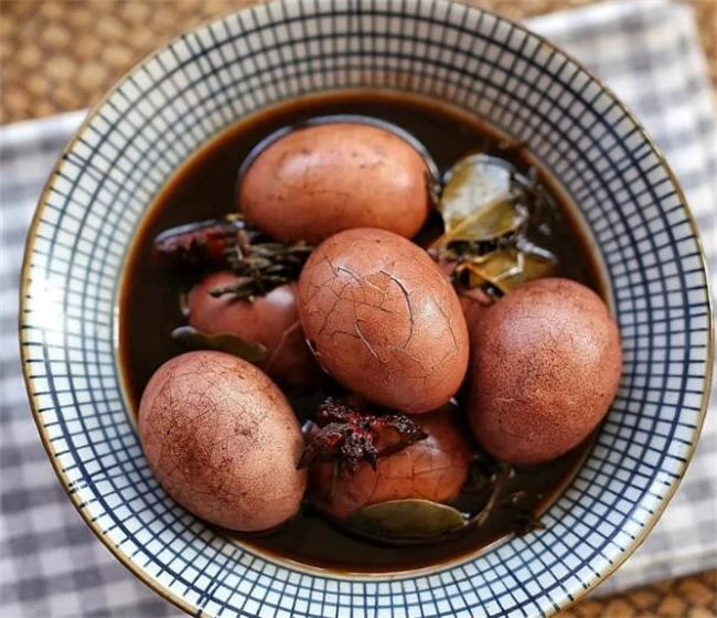 去市场上买回来新鲜的鸡蛋放在冰水里面浸泡一下,这样煮出来的鸡蛋比较容易脱壳浸泡好的鸡蛋清洗干净。冷水下锅煮鸡蛋,如果热水煮鸡蛋的话,鸡蛋会爆。鸡蛋冷水下锅,开锅以后转小火煮5分钟,再闷三分钟捞出来放在凉水里面。重新烧一锅水放入花椒,大料,桂皮,香叶,适量红茶,老抽食用盐。大火把水烧开,煮5分钟把汤料熬出香味儿,然后把鸡蛋敲破壳放在里面继续煮3~5分钟。