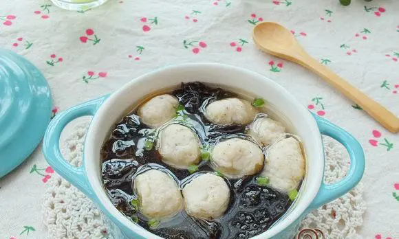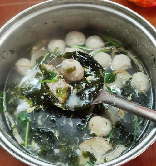 当鸡汤煮沸后,将制作好的肉丸和紫菜放入锅中,小火煮5-10分钟即可。在煮肉丸的过程中,需要不断地搅拌以免肉丸粘连在一起。