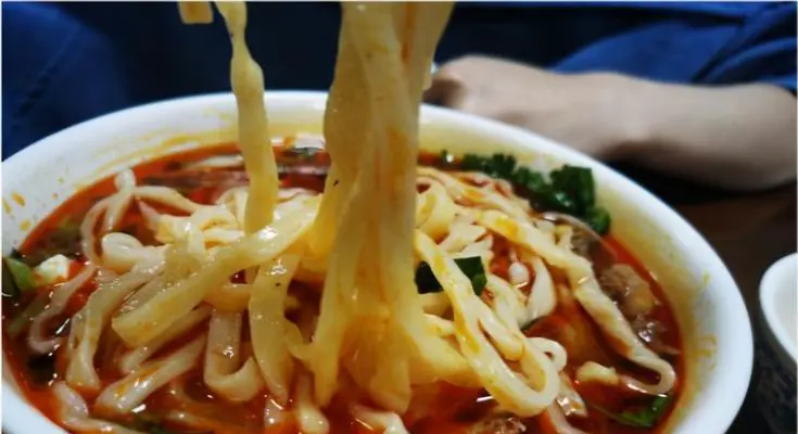 在享用之前需要将面条和臊子汤充分拌匀,以充分体现这道美食的独特风味。