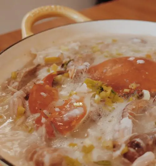 砂锅虾蟹粥是一道营养丰富、味道鲜美的美食。大虾和螃蟹富含优质蛋白质,还含有丰富的锌、铁等微量元素。米粉则是一种高能量、易消化的食品,富含多种维生素和矿物质。