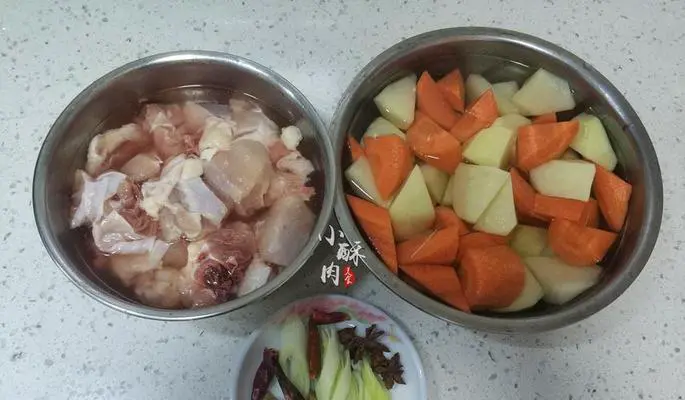 为了确保鸡肉的卫生安全,需要用盐水浸泡去除污渍和异味。将鸡块放入盐水中浸泡10分钟,再用清水冲洗干净。