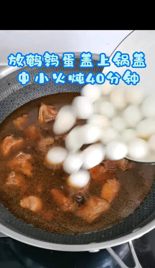 待排骨煮至七成熟时,将焯水后的鹌鹑蛋放入锅中同煮。