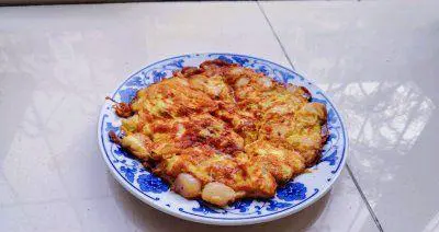 十二、装盘:将煎好的饼放在盘中。
