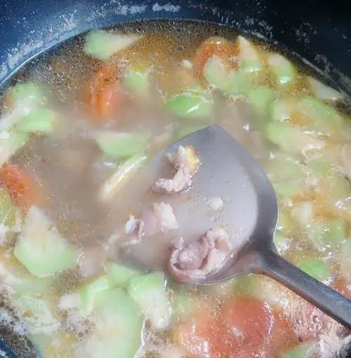 在小火下炖煮10分钟左右,待丝瓜软烂即可。