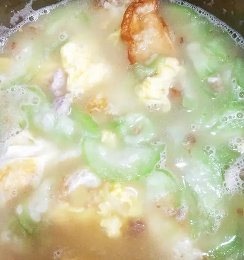 12.热气腾腾的白贝瘦肉丝瓜汤就做好了。