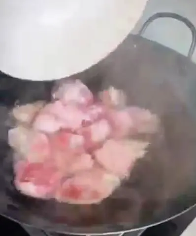 3. 准备一锅开水,将猪脚放入锅中焯水,里面要放几个生姜片。