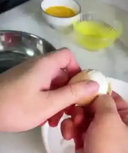 1. 准备七八个鸡蛋煮熟,并剥壳备用。