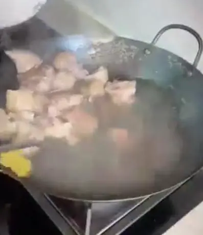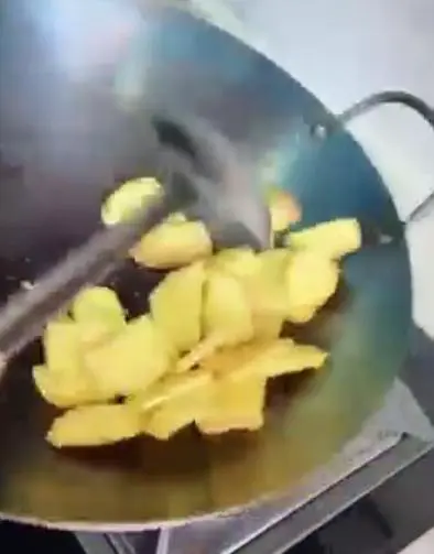 6. 将姜片倒入锅中,大火翻炒出水分。