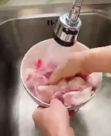 4. 焯水后捞起冲洗干净备用。