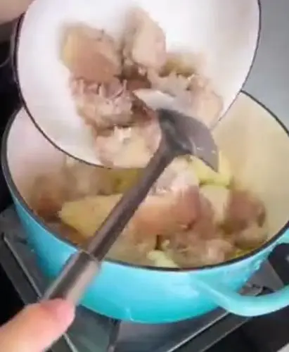7. 将鸡蛋,猪脚,生姜一起放入烹饪锅中。