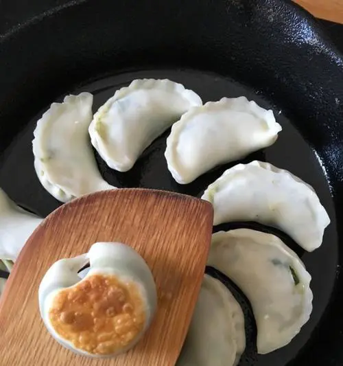 虾皮锅贴煎制过程中,虾皮的香气会渗透到馅料中,使得口感更加浓郁。