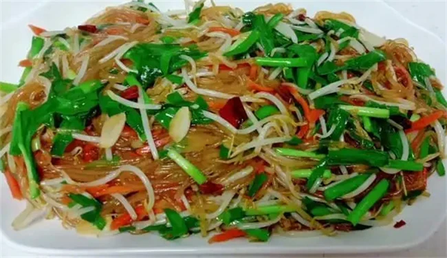 韭菜炒粉条也是非常好吃的一道菜。就要先把粉条用热水浸泡两个小时,或者直接把粉条放在锅里面煮制成熟。出来之后放在凉水里面冲洗变凉,不然会粘连到一起影响炒菜的效果。准备适量蒜末葱花,两个干辣椒。喜欢吃肉也可以放点肉末,里面油热之后把肉沫下进去,炒出香味,加入适量清水,然后把炒好的粉条放进去,加入老抽味极鲜盐调味,炖至粉条入味软烂,然后把韭菜放进去,大火快速翻炒到韭菜断生装盘。