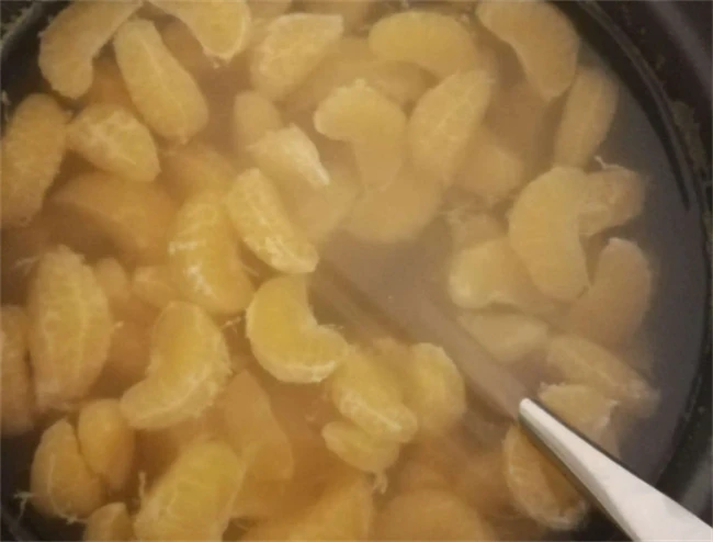 然后冷到稍微凉吧,橘子包装到瓶子里面,八分满,再倒入适量糖水拧紧盖子。那瓶子再放进锅里面冷水住十分钟,给橘子罐头进一步消毒杀菌。一般放置两三个月再吃,让里面的汤汁变粘稠,口感更好,但是如果煮完的橘子瓶子装不完,剩下的可以直接吃掉,尤其是夏天的时候,放在冰箱里面冰镇一下冰冰凉凉的很舒服。也可以用另一种做法,就是把橘子瓣儿都处理好之后,扔进瓶子里面,加上水和冰糖放在中国里面,蒸30分钟,趁热把盖子盖上这样做出来也很好吃。
