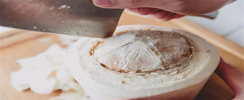 通常喝椰汁相对来说,是比较简单方便的,因为椰汁很容易被我们吸干净,但是椰肉想要品尝到的话,比较困难,但不见得就没有办法。而我们具体采用的方法是蒸制法,具体的做法是首先我们将椰子外壳敲碎,然后将椰子放到大火里面蒸15分钟到20分钟的样子。这时候椰子肉和椰壳已经分离,我们用小刀直接将它撬下来就可以了。