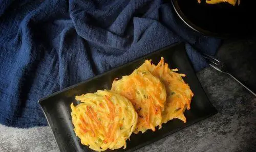 现在,你已经成功制作出一份美味的油炸土豆饼了。它的外皮酥脆,内部香软,味道非常美味。