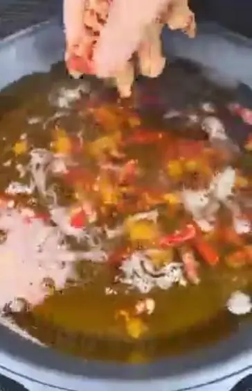 9.炸至辣椒漂浮即可出锅。