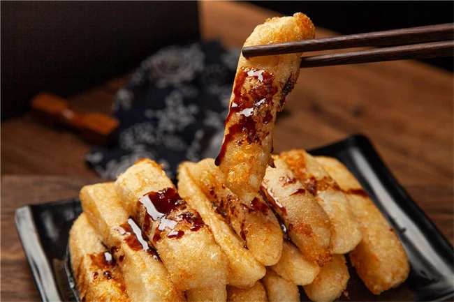 油炸糍粑是溧阳的一种特色美食,也是当地的一种零食,在溧阳当地的街头上,能够经常看到油炸糍粑的身影,经过热油烘炸出来的糍粑,外皮酥脆焦香,内里柔软细腻,具有一定的弹性,口感鲜香甜腻,撒上一些豆粉,吃起来会更加美味,这种小吃深受溧阳当地人的喜爱,是溧阳的特色吃食。