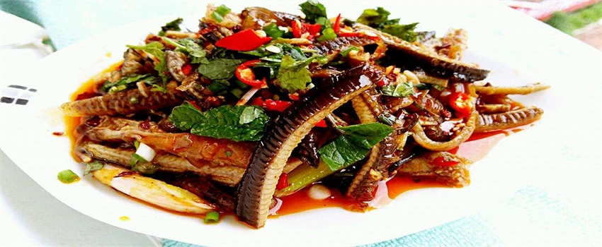 黄鳝是一种很有营养的食物,加入适合凉拌的蔬菜,吃起来特别的清爽可口,鱼肉也是Q弹爽滑,非常的开胃有嚼劲,并且是一道非常有名的粤菜。