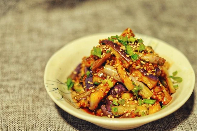 紫茄子撕成条之后,我们需要将其放到大的盆中,这个时候再将事先调好的酱汁倒上去,最后撒上一些葱花和香菜,搅拌均匀之后就可以开吃。不得不说,凉拌手撕茄子不仅美味可口而且还非常的下饭,在炎热的夏天利用它,提高食欲效果比较好。